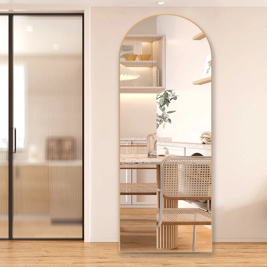 Arched Full-Length Floor Mirror, 64"X21" Full Body Standing Mirror, Gold